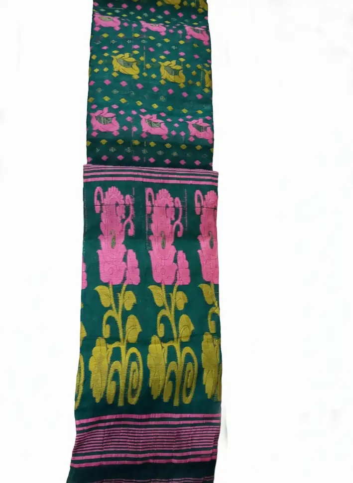 The printed Jamdani-style pattern adds traditional detailing while keeping the overall look light and balanced. The green color provides a fresh yet classic tone, making it suitable for festive gatherings, cultural events, and small celebrations.